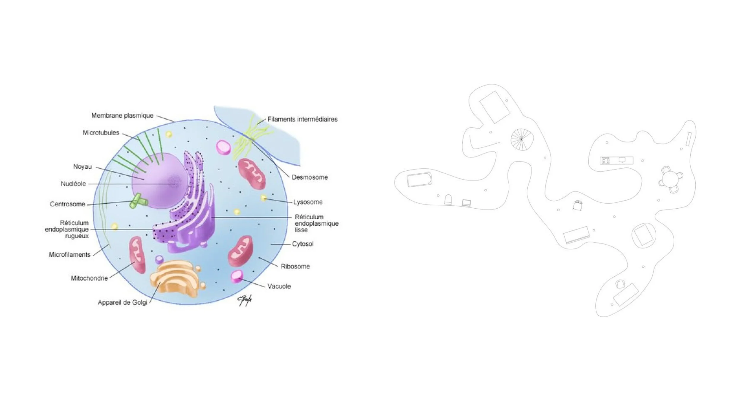 The initial architectural concept was inspired by the cell where the invisible becomes the essential.