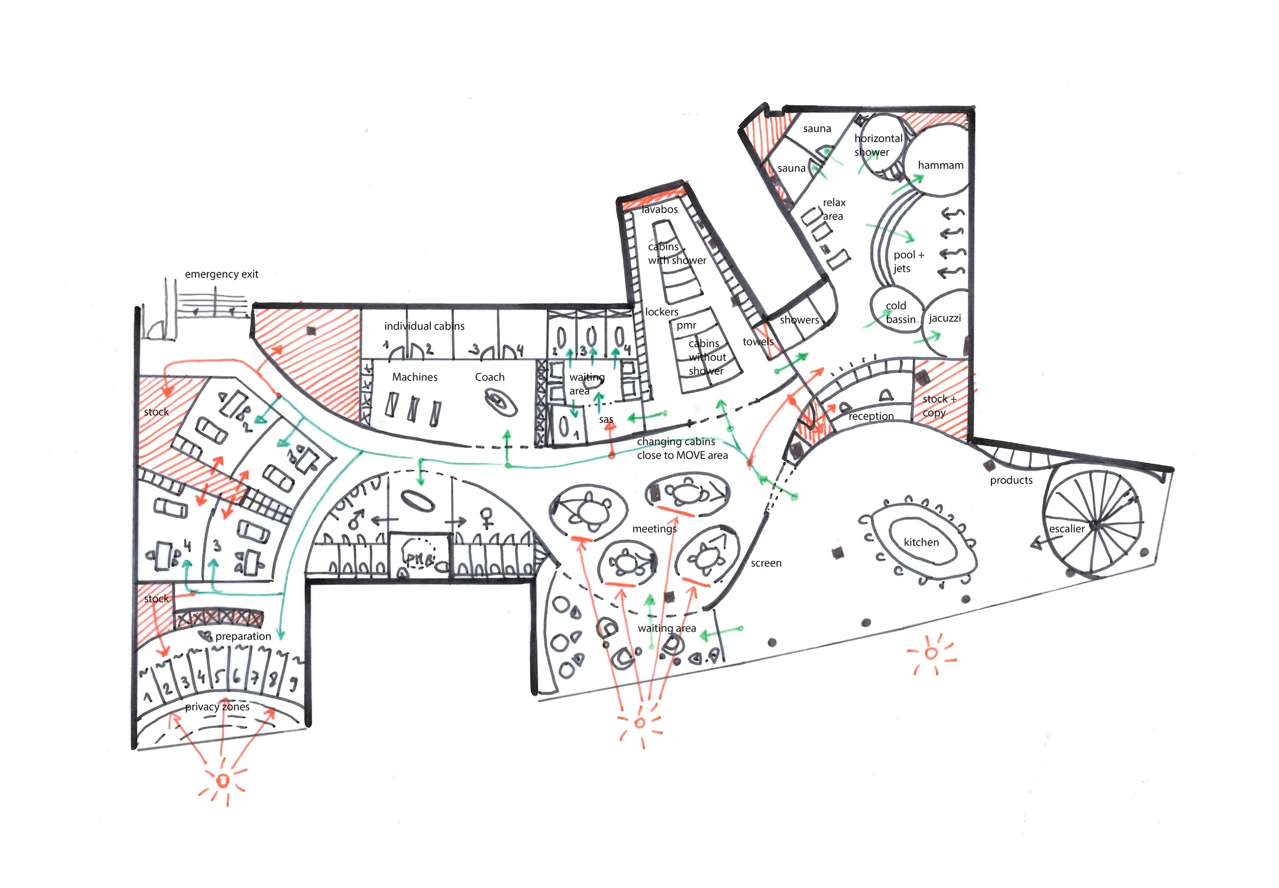 The core of the concept lies in circulation, much like blood flowing through each organ. Everything is fluid and organic.